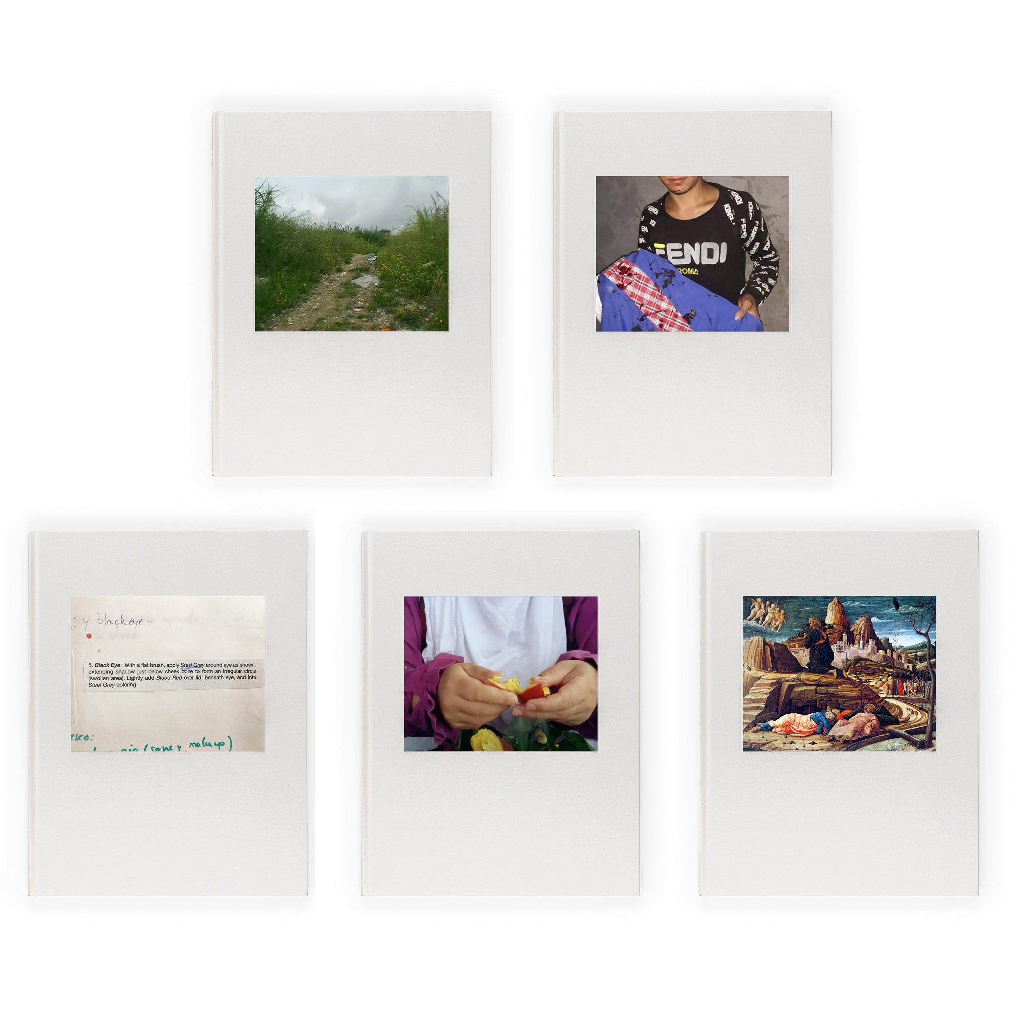 Together, the books propose a dialogue between process and image, inviting viewers to look beyond the finished photograph toward the intricate act of its making. Each of the five copies features a unique cover—an altered fragment drawn from Ribeira’s original references—transforming every book into a singular object within the evolving landscape of her work.