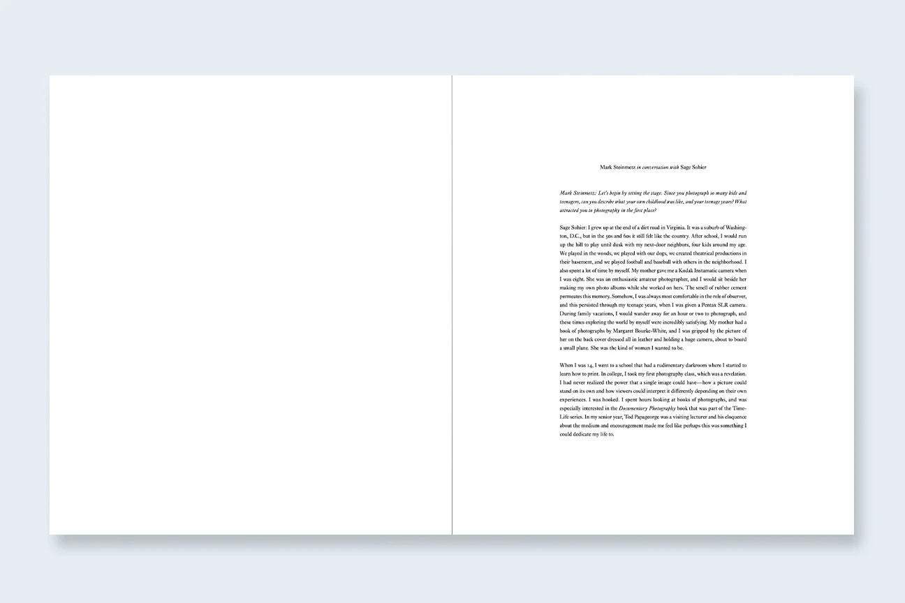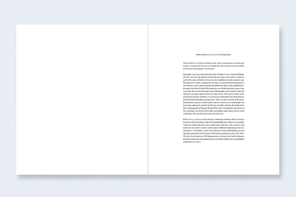 “These pictures describe a long-ago time, and yet in looking at them I become once again the young photographer who took them on a hot summer day, sweat and dust pungent on the breeze; in the distance, I can hear the laughter of children who are now middle-aged.” — Sage Sohier, from the introductory interview by Mark Steinmetz