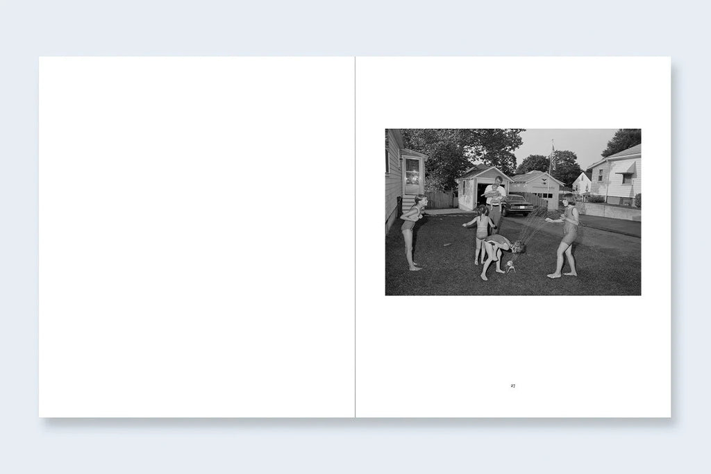 Sohier finds her subjects in the open spaces of parking lots, front yards and public streets, and in the quieter confines of modest homes, back yards and porches. She depicts “the boredom of hot summer days” with a precise attention to the surroundings, with cold drinks, propane grills, sprinklers and pets each providing small comforts and revealing the quiet tempo of the days. Sohier’s observation that “images…gain a historical perspective over time that adds to their interest,” is proven true in this collection of black and white images.