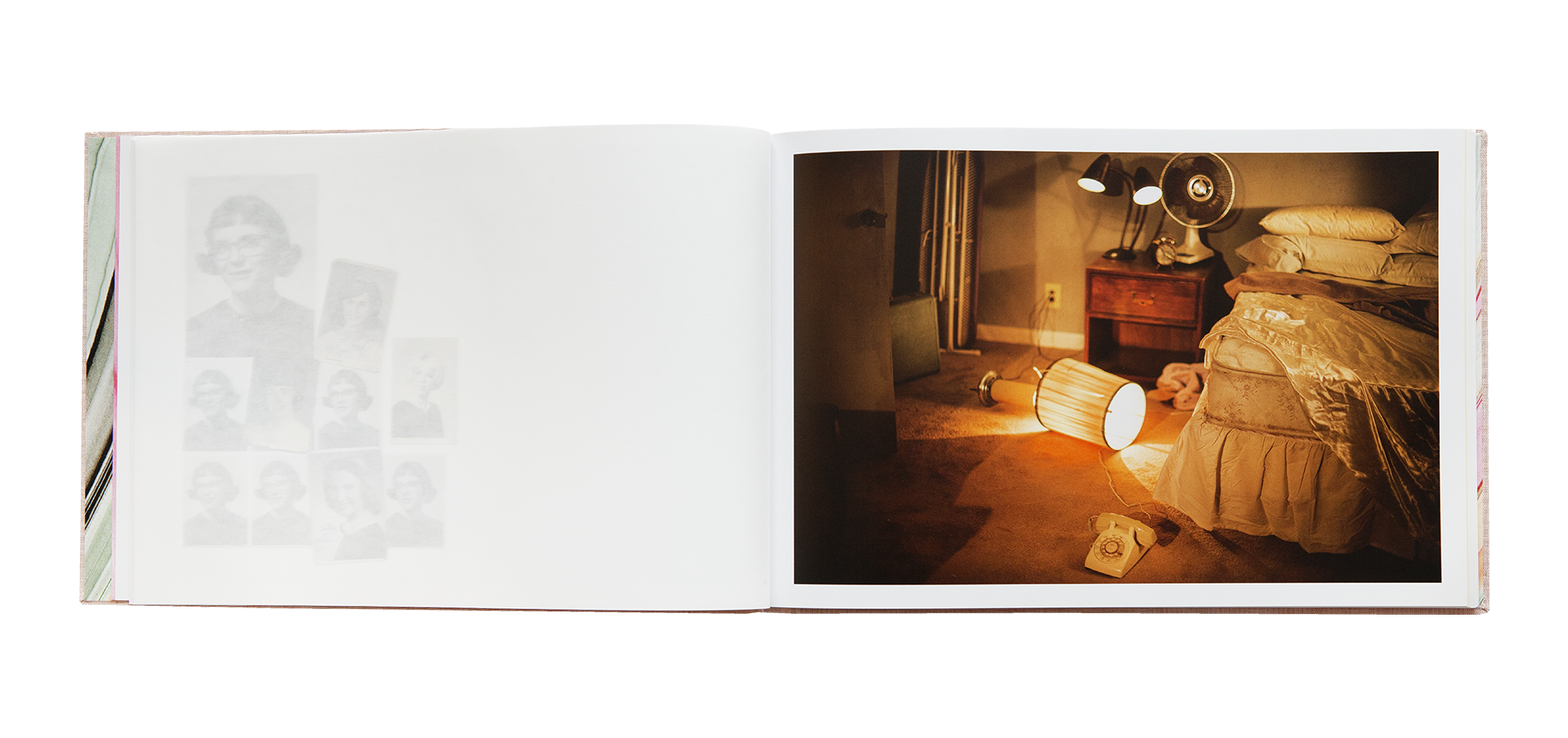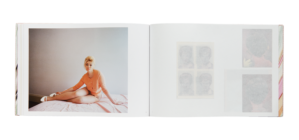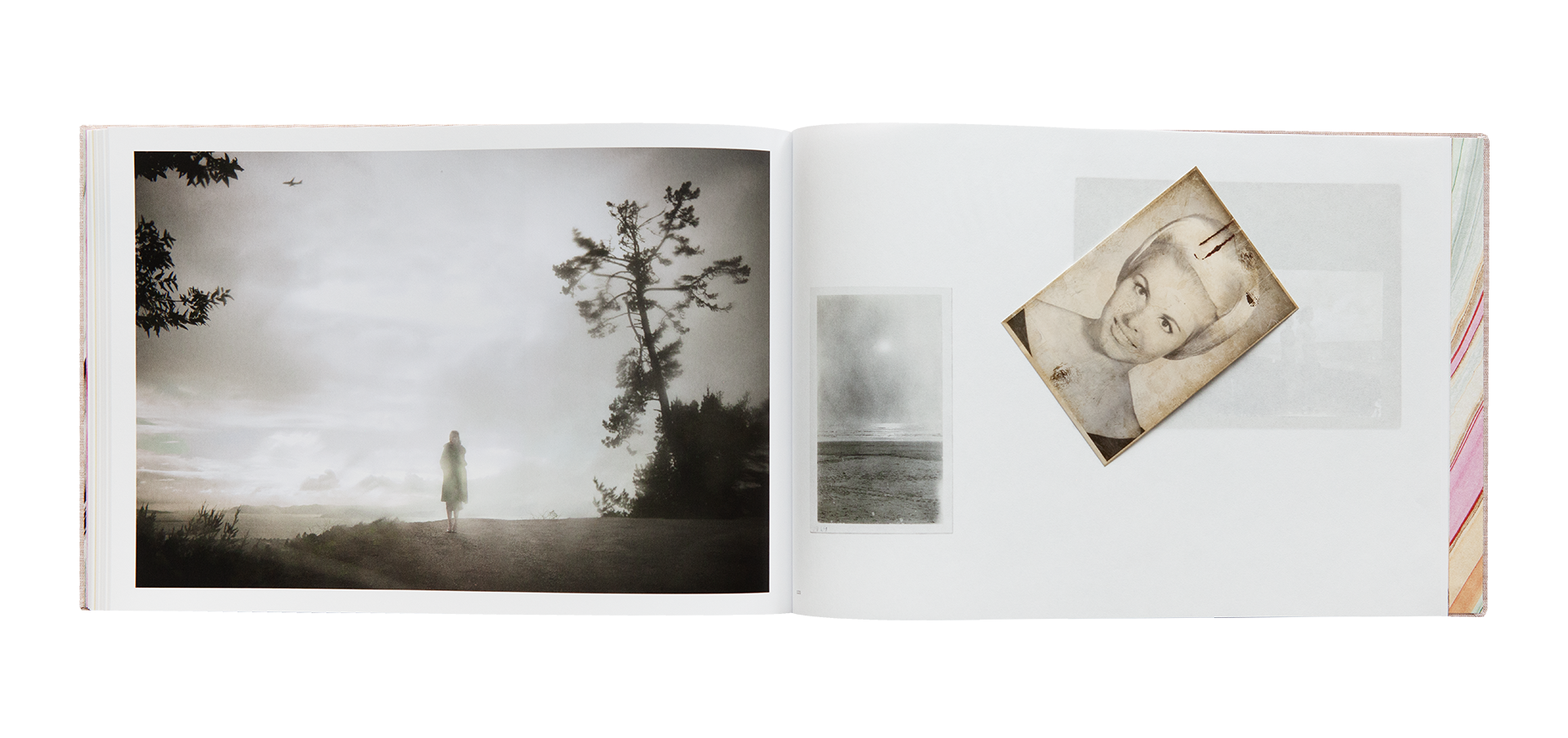 Both an ode to the printed image and to the memory of those who have lived, this limited edition echoes traditional photo albums with its screw-bound canvas cover. The dialogue between the materiality of the images and the different types of paper, including one that is translucent, creates a cinematic fiction within the book, with certain photographs appearing and disappearing like enigmatic collages. These images, arranged randomly on the page, respond to one another and allow the reader to create their own narratives.